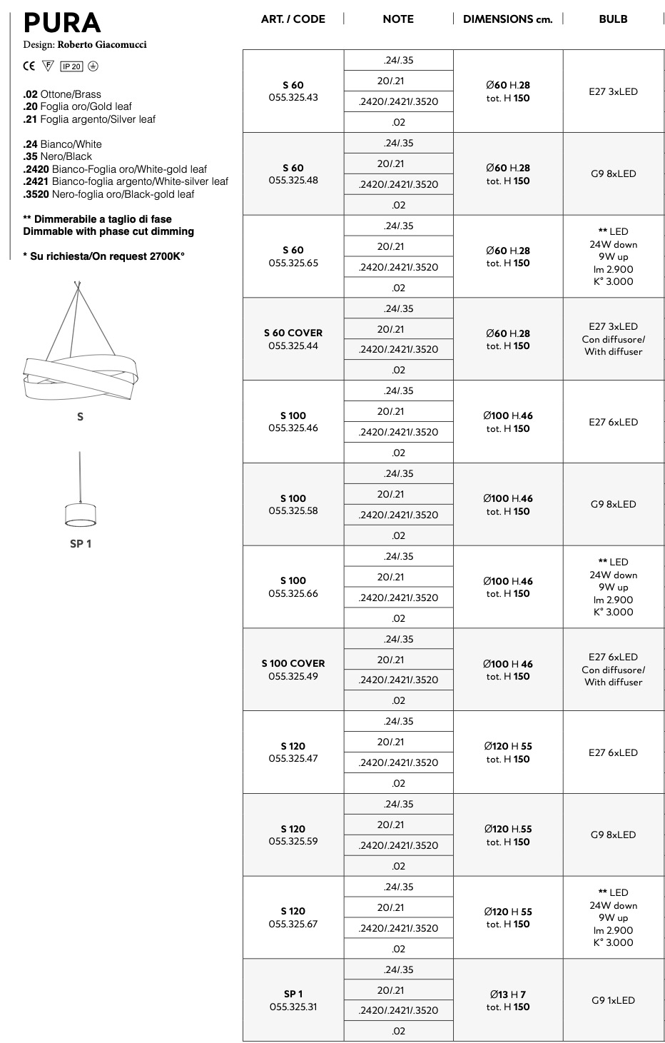 - Category: Suspension, Ceiling, Wall, Table