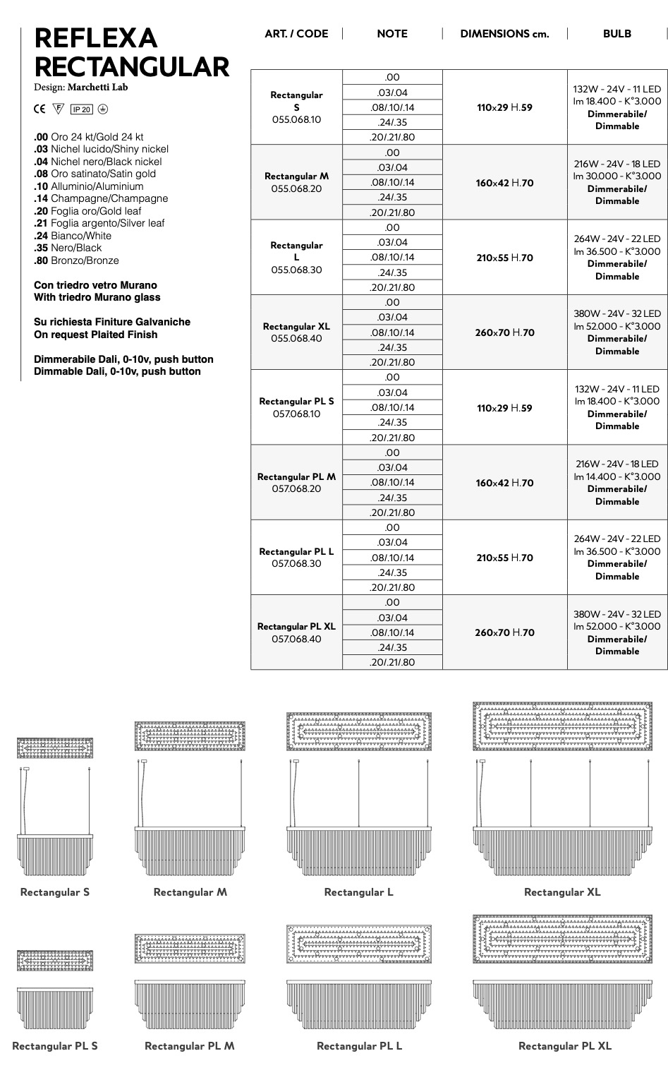 - Finish: .00 gold 24kt – .03 shiny nickel – .08 satine gold – .10 alluminium –